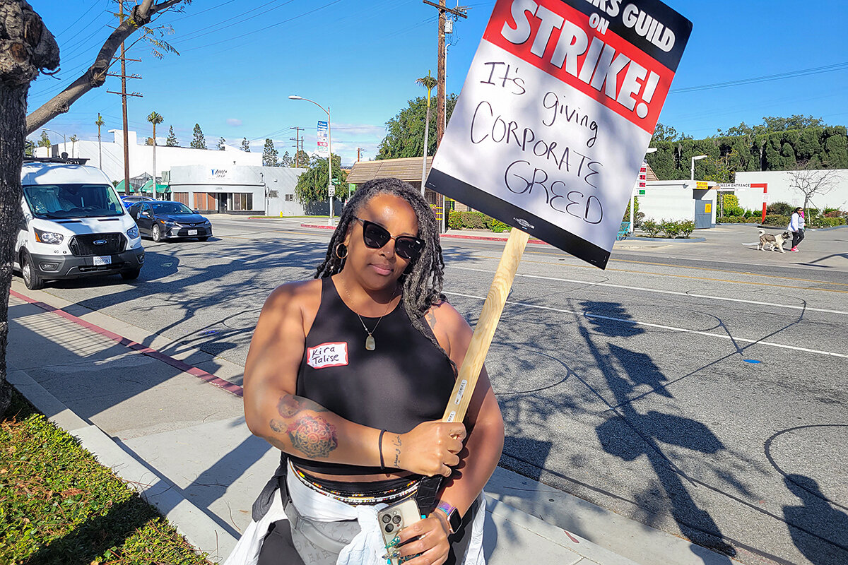 鈥淭he entire reason why we鈥檙e out here, in my opinion, is rooted in corporate greed, but also this idea of introducing AI to replace us,鈥 says Kira Talise, a writer protesting outside Sony Studios in Culver City. 鈥淲e are the people who write the content that makes these companies billions of dollars. ... It鈥檚 really disheartening to be undervalued in this way and for it to be perceived that we could just be replaced by computers.鈥澛