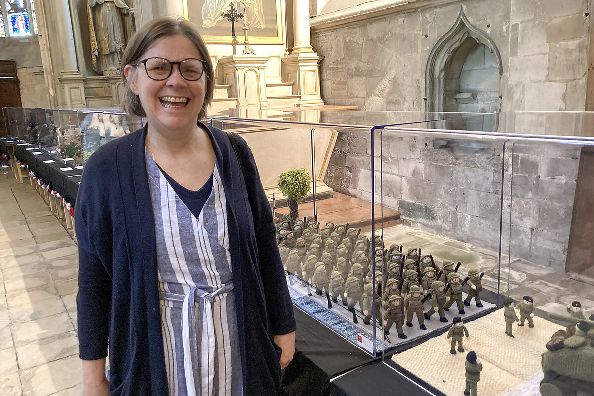 Historical accuracy has been a significant part of the project, says Ms. Forster, who got help from a historian to verify military uniforms, colors, and insignia. But volunteer knitters did much of the research themselves.