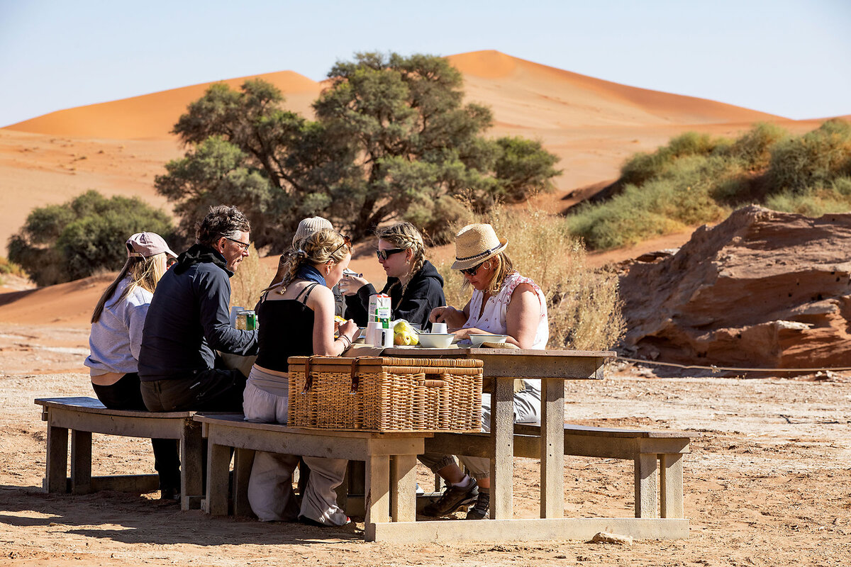 While the sun comes up, we begin to realize there was never any need to rush. In this national park (one of Africa鈥檚 vastest) and in this desert (which is said to be the world鈥檚 oldest), there is simply no reason to hurry. The dawn of a new day is spectacular in this place no matter what you are doing: looking up at a dune the height of a high-rise, or studying insect trails on the sandy horizon.
