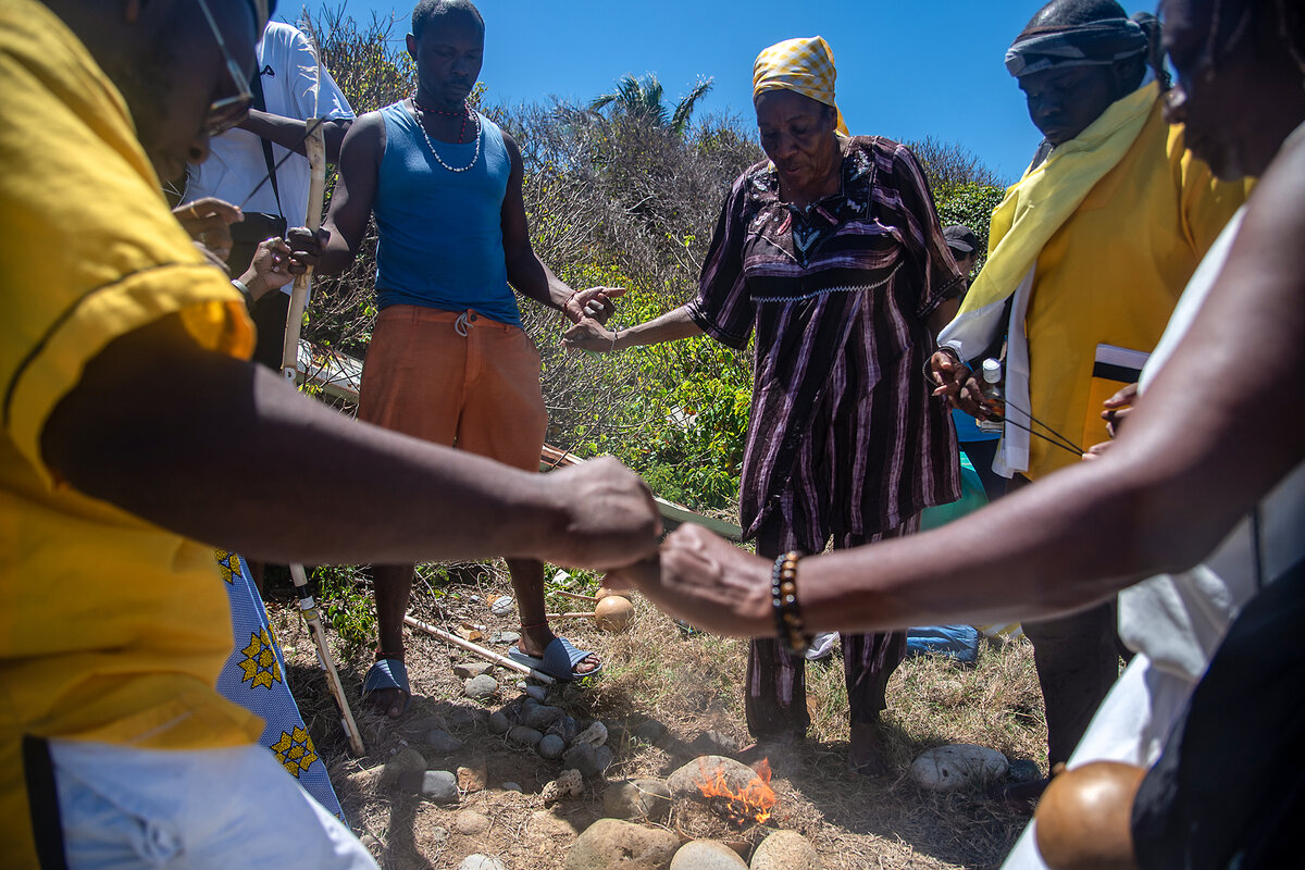 This year, a group of descendants making the hourlong trip by catamaran sits solemnly as the choppy sea crashes against the hull. Their eyes are focused on the coastline of Baliceaux. When the boat reaches the shore, the passengers 鈥 from countries including Honduras, Belize, Guatemala, and the United States 鈥 jump onto the beach and encircle a large bowl of burning incense. They intertwine fingers and begin a ritual song to bless the land.