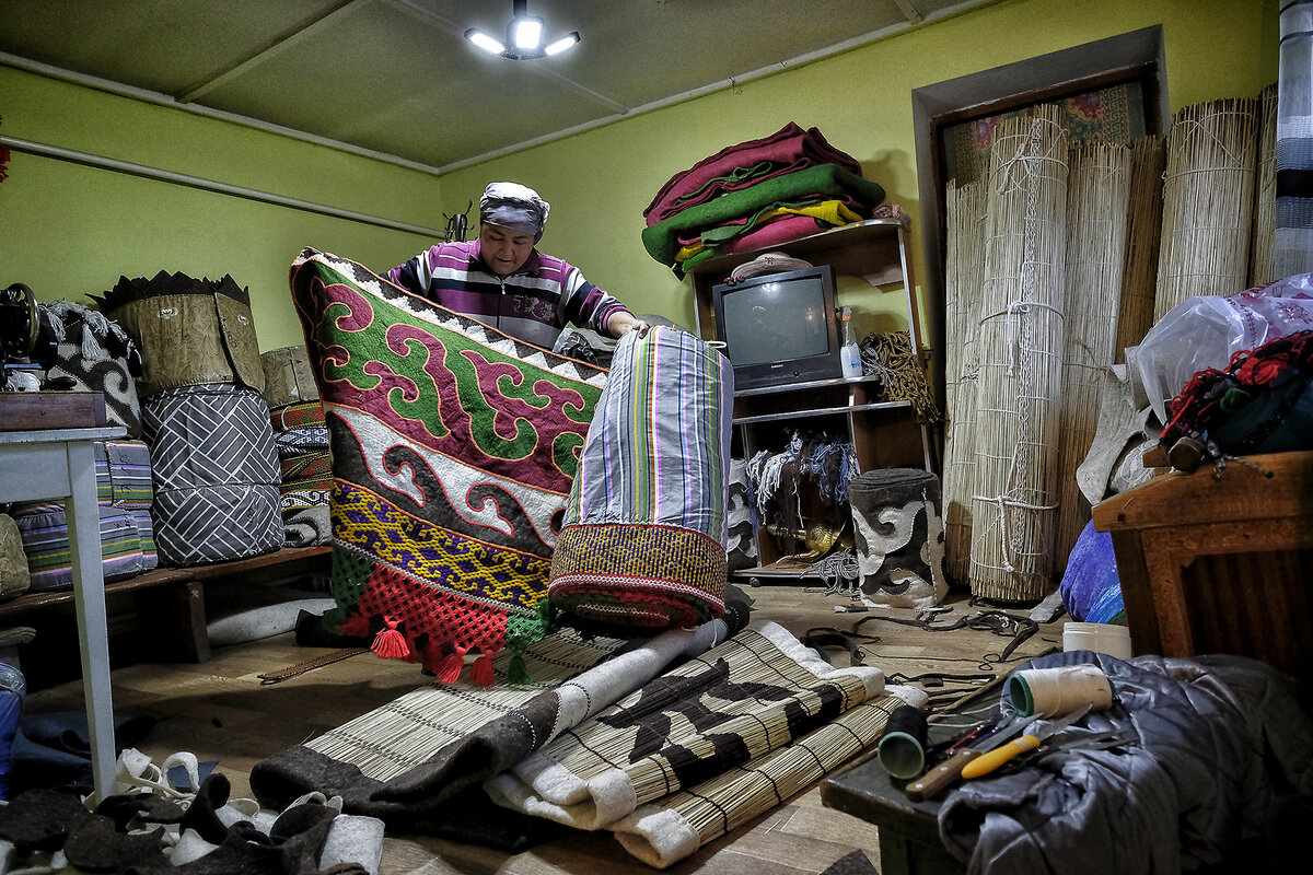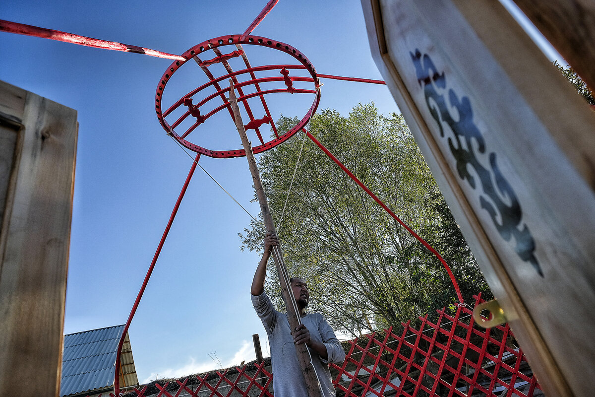 Bolot Mukaeb, a first-generation yurt-maker, says it is a tradition to build a yurt when a child is born. Weddings, funerals, and other occasions also are marked in yurts. 鈥淎lthough cheaper Chinese yurts made of synthetic fabric and metal have entered the market, many people still prefer the traditional ones handmade by families like us,鈥 Mr. Mukaeb says.