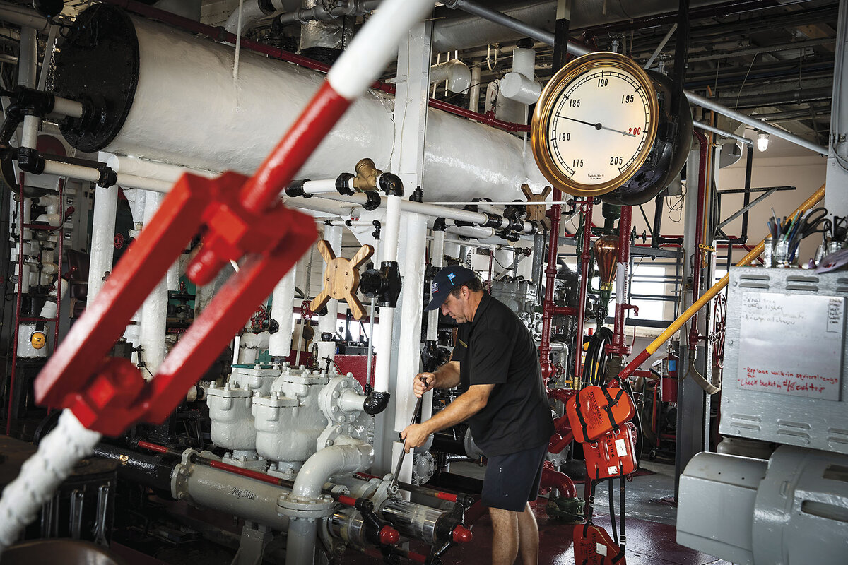 In the lower-deck boiler room 鈥 which is temperate only in comparison with the surface of Venus 鈥 chief engineer Daniel Lewis says the engines are the same as they were in Mark Twain鈥檚 time. Best part of the job? Meeting passengers from around the world. It鈥檚 hard to hear him talk, because the rotating paddle wheel churns the water like a frenzy of piranhas.