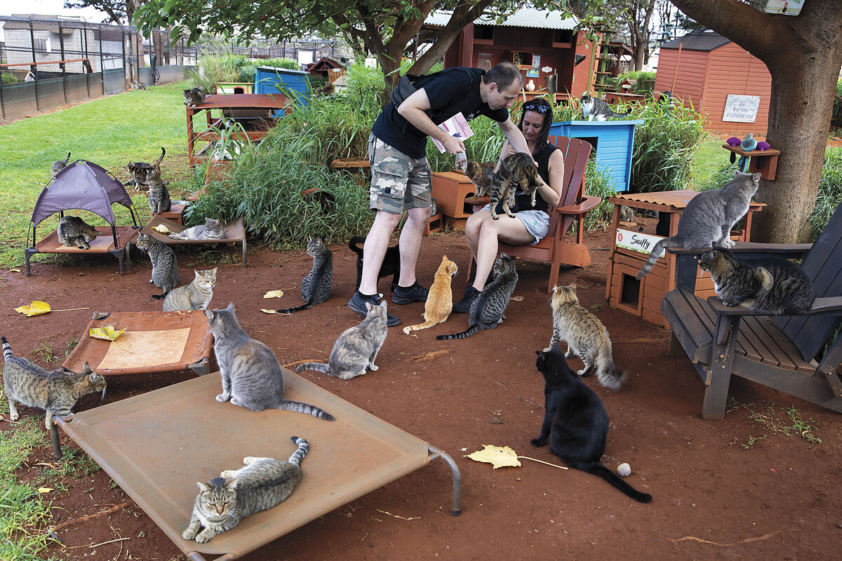 Every year, the nonprofit takes in 150 to 200 cats, most of whom come from Lanai. An exception occurred in August 2023 after a deadly blaze swept through Lahaina, a city on Maui鈥檚 northwestern coast. The sanctuary opened its arms to 220 cats rescued postfire by the Maui Humane Society. In exchange, that organization agreed to take 220 adoptable cats from Lanai Cat Sanctuary over the next few years, Mr. Adarna says.