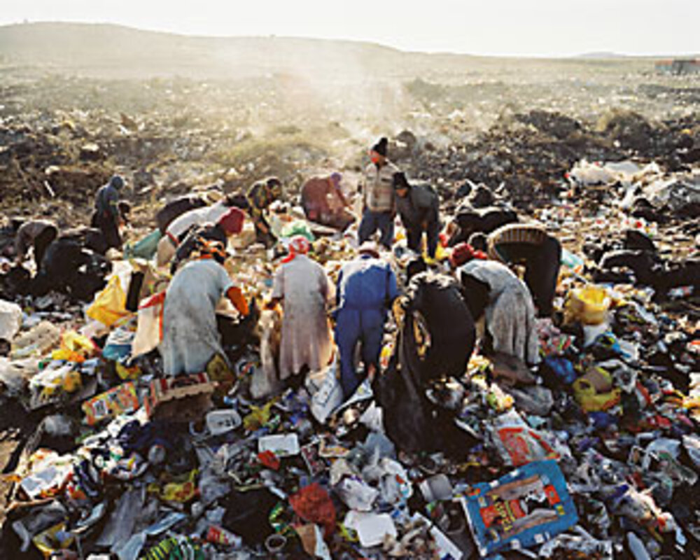 The most touching shots are those of residents of the town dump, Vaalkoppies, as they form a circle, like vultures, bent over to pick through a mountain of trash for scraps of food. One cannot escape the inference that these human beings have been thrown away by their government, "a truly dystopian vision," Subotzky calls it. As Nelson Mandela has said, "A nation should not be judged by how it treats its highest citizens, but its lowest ones."