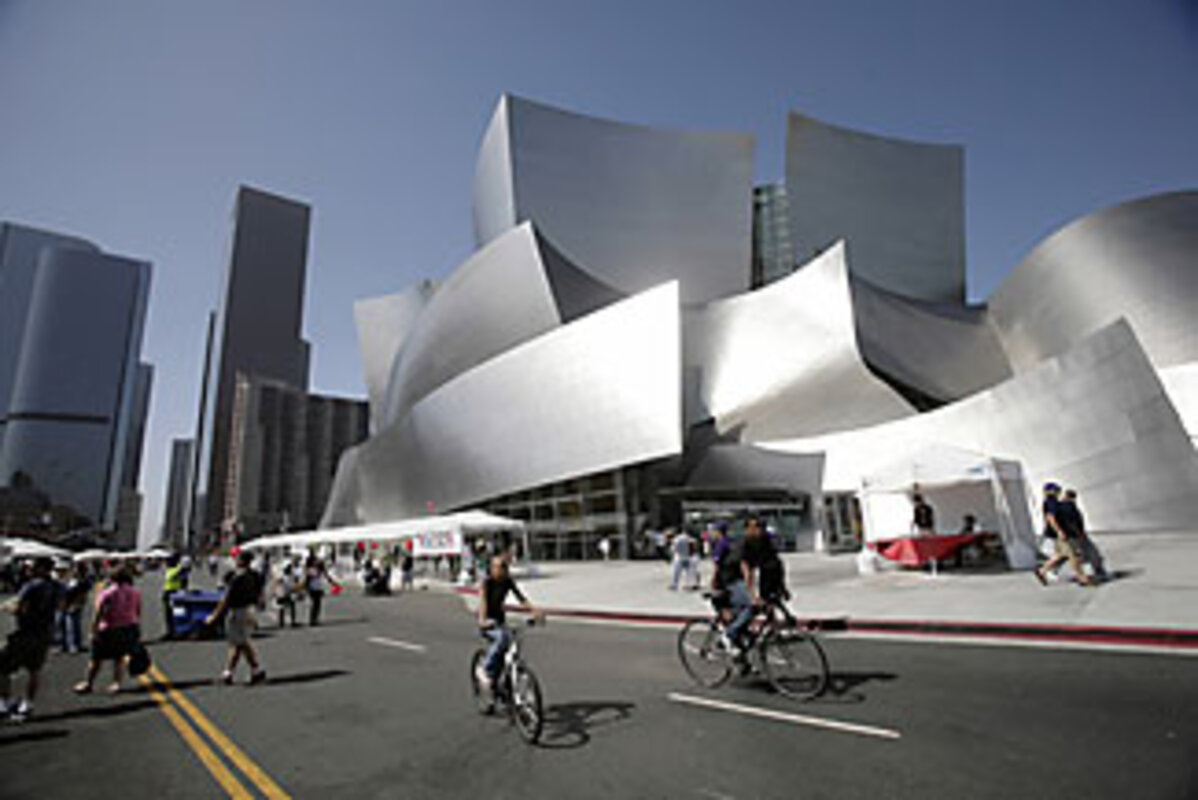 But take a few steps back through the hall's front doors and it's as if someone abruptly pulled the plug on a movie projector. Virtually none of those concertgoers make it onto the sidewalks of downtown Los Angeles, which are eerily muted.