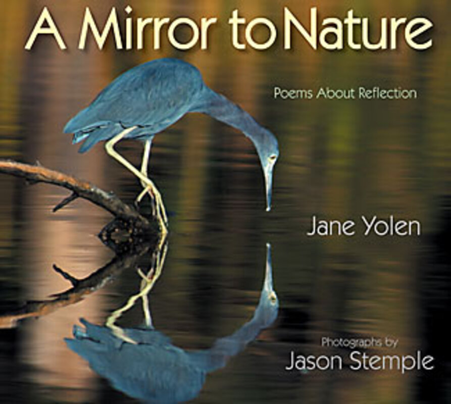 Celebrate spring with A Mirror to Nature, a beautiful photo/poetry book from a mother-and-son team that seems designed for families to share together. Children will love gazing at Jason Stemple's portraits of living things reflected in water, while their parents read Jane Yolen's accompanying poems. Wood storks, frogs, and less cuddly beasts get their own odes, which are by turns whimsical or wry. Next to a photo of an alligator's jaws twinned in the water, Yolen writes, "One pair/ is real,/ and one/ a reflection./ But I'll never/ give either/ a closer/ inspection."