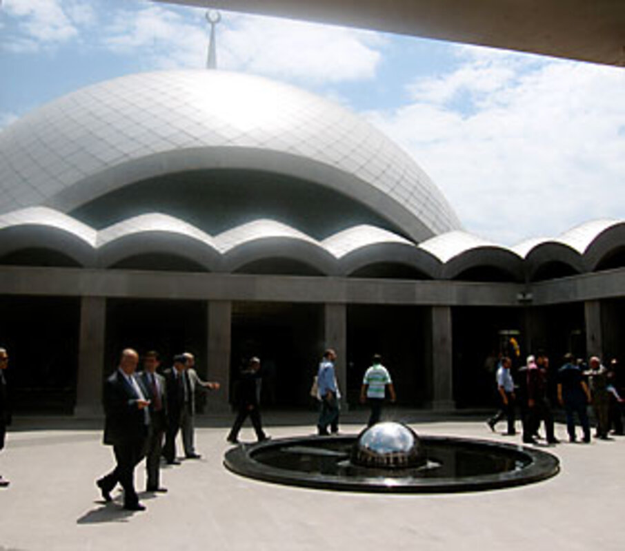 The keening cry of a call to prayer mingles with the screech of seagulls in 脺sk眉dar, across the Bosporus from Istanbul. Worshipers hurry to the recently opened 艦akirin Mosque, which resembles a futuristic fantasy with its sleek dome and rocketlike minarets. Inside, the d茅cor is similarly radical. The mihrab, or niche to indicate the direction of prayers, is not only bright turquoise, it's shaped like a shell. The minbar, or stepped pulpit 鈥 instead of the usual carved stone or wood 鈥 is acrylic. Most radical is the fact that the interior design was created by a woman, a first in mosque architecture.