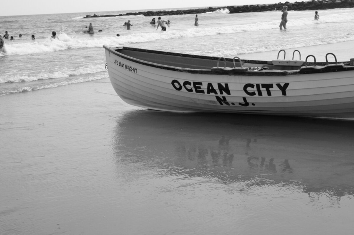 Both photographs show people playing in water. But the foregrounds offer a startling contrast: In one, a small white boat labeled 鈥Ocean City, N.J.鈥 calls up images of vacation; in the other, the tops of military tanks call up images of war.