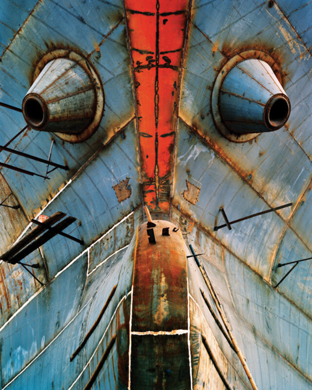 If this exhibit hints at a broader Adams, it also celebrates Burtynsky's nuanced ecological sensibility. In a back room of the gallery, four Burtynsky photographs document the "shipbreaking" of a tanker in Bangladesh. The color prints could be stock footage for a shipping company. But upon closer inspection, the series shows a ship's transition from disrepair to reuse 鈥 a kind of mechanical life cycle.
