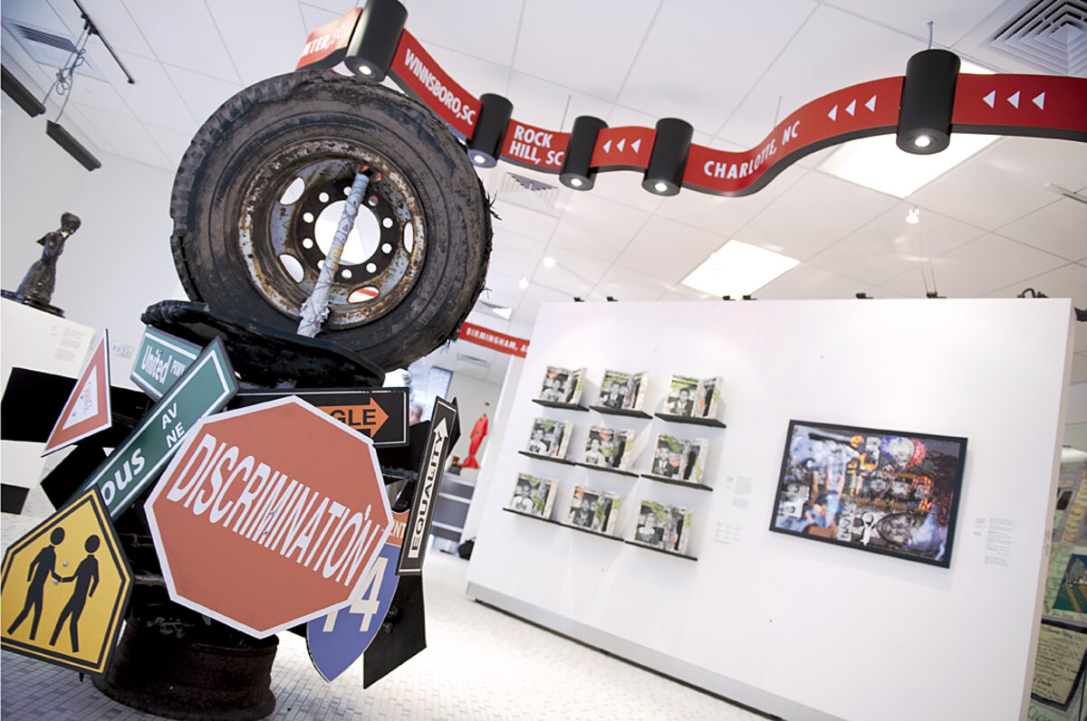 Eventually, with the help of several Montgomery officials 鈥 among them federal district court Judge Myron Thompson 鈥 and the Alabama Historical Commission, the station was saved, mostly. The original facade remains, along with the door reserved for whites. (The "colored" entrance and the back corridors are gone.) But the real dynamism of the museum comes from the art within it 鈥 the installations, canvases, and sculptures, which give a vibrant face to the history of the movement.