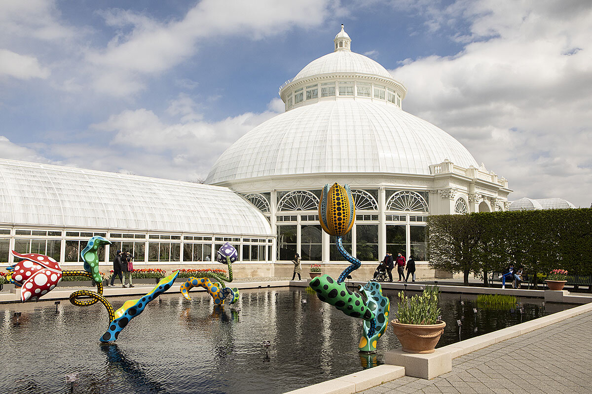 “Hymn of Life – Tulips” rises from the Hardy Pool outside the Haupt Conservatory. The exhibition includes not only outdoor sculptures but also an indoor display of drawings and paintings.