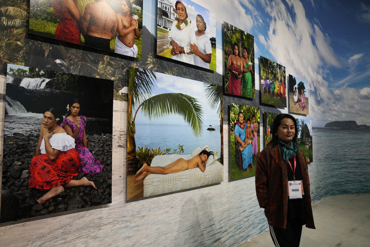 The exhibition features photos of the Fa鈥檃fafine mimicking paintings of Pacific islanders by post-impressionist French artist Paul Gaugin, reclaiming the images in a process the artist refers to as 鈥渦pcycling.鈥
