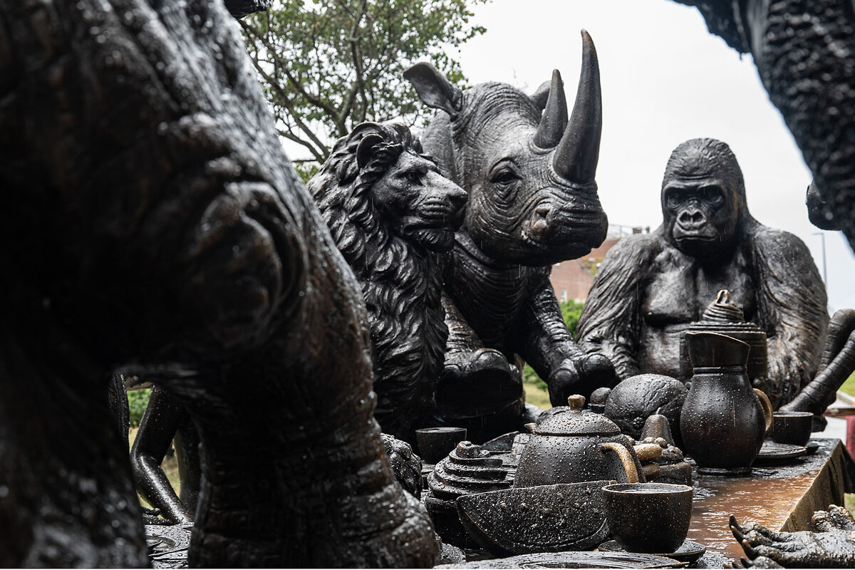 Mr. and Ms. Schattner hope that their mission of wildlife preservation can bring people together. “Everyone can relate to the idea of protecting what’s vulnerable,” Mr. Schattner says. “Art can cross boundaries where words sometimes can’t.” At The Wild Table of Love sit a variety of animals that normally wouldn’t be seen together in the wild.