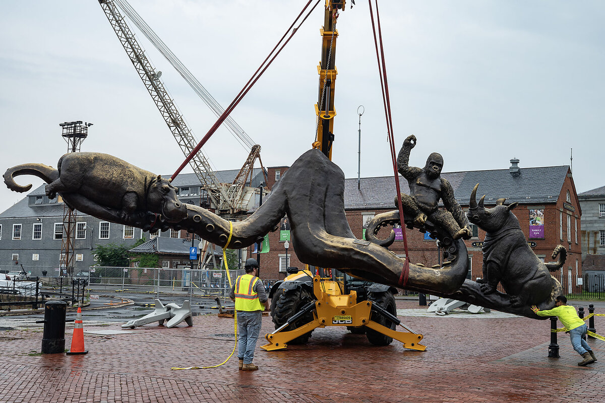 Having arrived from New York’s World Trade Center Plaza on July 31, the trio of sculptures known together as brings new life to the community. Behind the effort is local nonprofit Navy Yard Garden & Art, which received a city grant to revitalize the neighborhood. It chose public art as a vehicle.