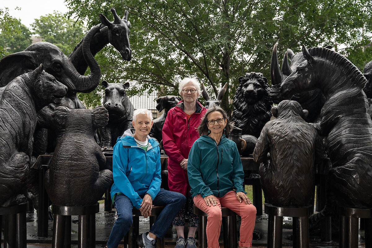 “Public art makes people stop. It creates a shared moment in an unexpected place. Unlike a gallery, it’s not exclusive or elitist. It’s for everyone,” says artist Gillie Schattner. Ms. Schattner and her husband, Marc, have placed more than 100 wildlife sculptures in over 40 cities around the world. This is their first exhibition in Boston.