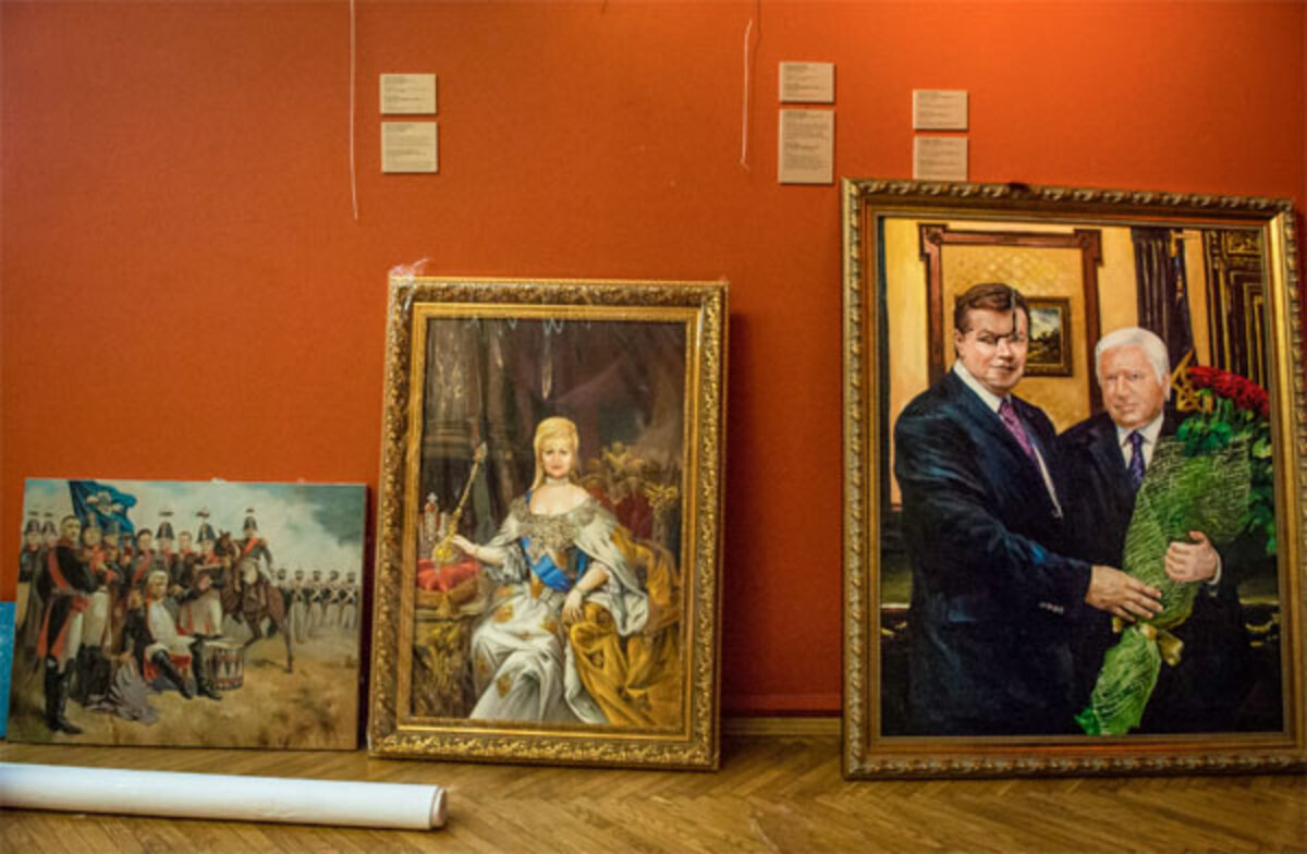 There are also some 20 portraits of Yanukovych himself, mostly presents from others. One of the portraits was painted by one of the most well-known Russian artists, Nikas Safronov, and it depicts Yanukovych as a bit younger and a bit more slender than he actually is. There is a portrait made of amber as well as a portrait made of millet, rice, poppy seeds, beans and corn given to him as a present from one of the provincial branches of the Party of Regions. In addition, there is an embroidered portrait, a portrait made of gold and silver, a bronze bust, and an amusing wax figure, looking a bit like a scarecrow amidst all these grand portraits.