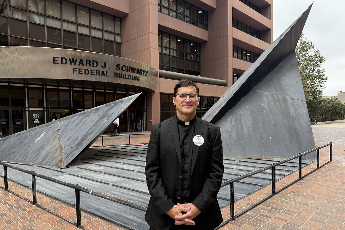 The man, whom the Monitor is not naming at the request of his lawyer, has resided in the country with the permission of the U.S. government for 20 years. Then, this spring, the Trump administration reopened his case and set an August court date. Father Santarosa is here both as聽moral support and to bear witness. The man鈥檚 family is afraid that he might be taken into detention after his hearing.