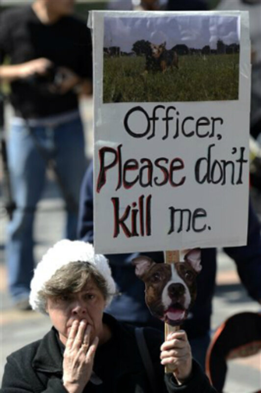 Several dozen dog owners rallied outside the Capitol before the bill was heard. Some held signs that read, "Officer, please don't kill me," with an accompanying picture of a dog. The bill specifically cites canines shot by law enforcement in Colorado, including Scar, Kupa, and Ava.