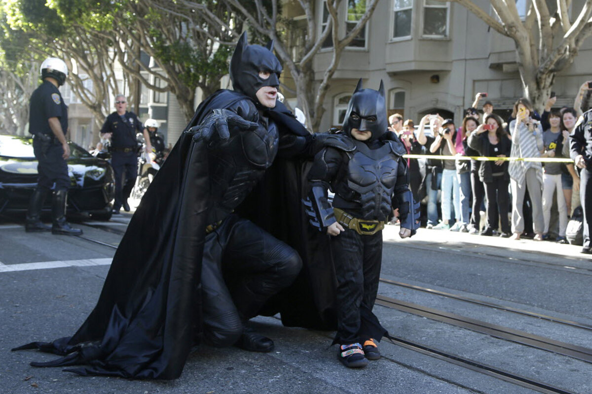 Dressed in Batman's signature cape and mask, Miles Scott faced foe after foe around聽San聽Francisco聽on Friday, drawing huge crowds and fulfilling his greatest wish in the process.
