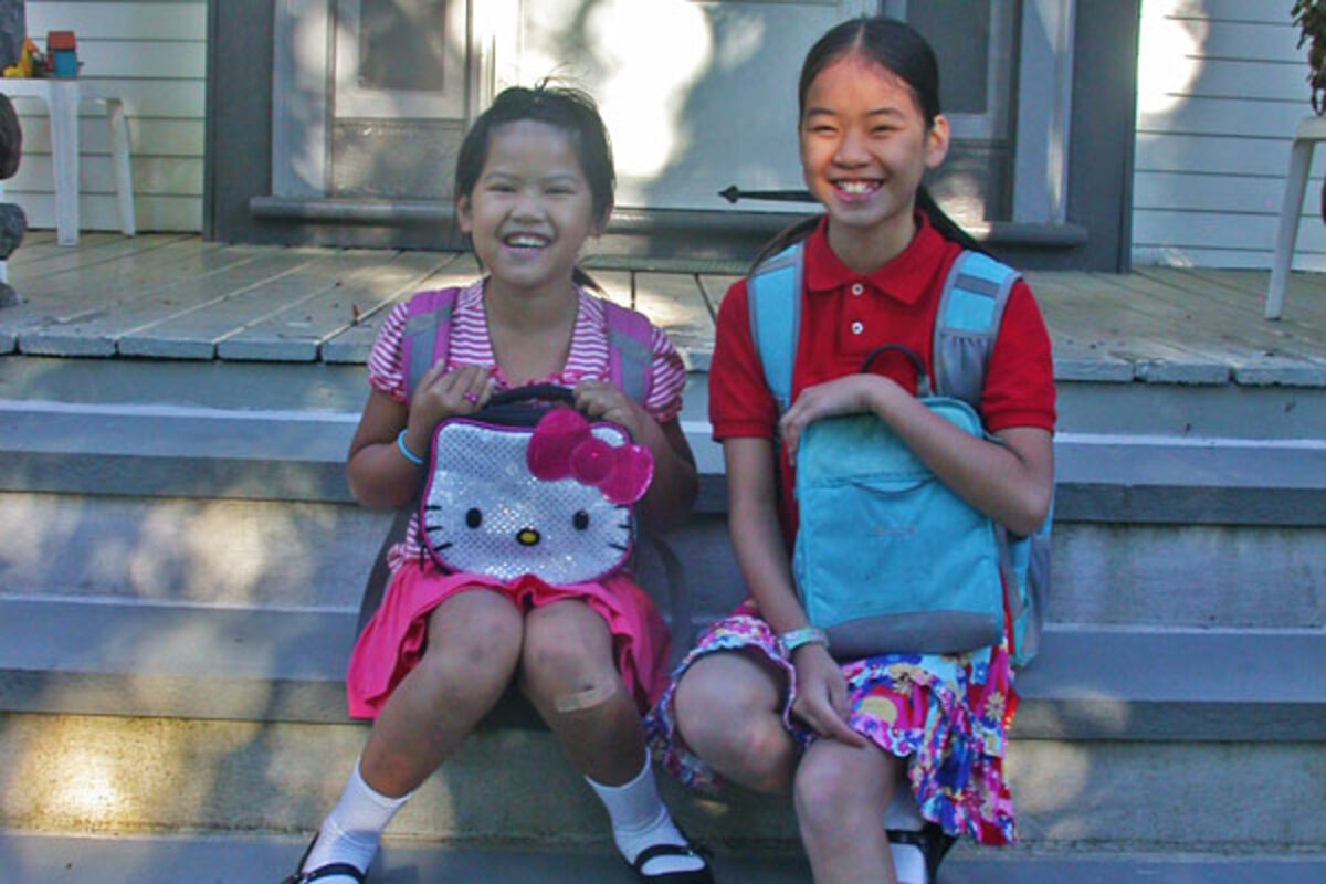 Our two daughters headed back to school recently, and the experience of sending them off to fend for themselves at the elementary school up the street has been, for me, emotional, amusing, and problematic.