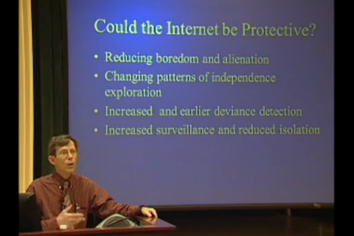 Then, a few years ago, when sociology professor David Finkelhor at the University of New Hampshire gave his milestone talk, 鈥,鈥 I heard him offer the most plausible reason I鈥檇 heard or seen yet for what he called this 鈥渏uvenoia鈥 鈥 鈥渢he exaggerated fear about the influence of social change on youth鈥 鈥 that had developed around children鈥檚 seemingly unprecedented and uncontrollable exposure to a diversity of values and influences not our own.