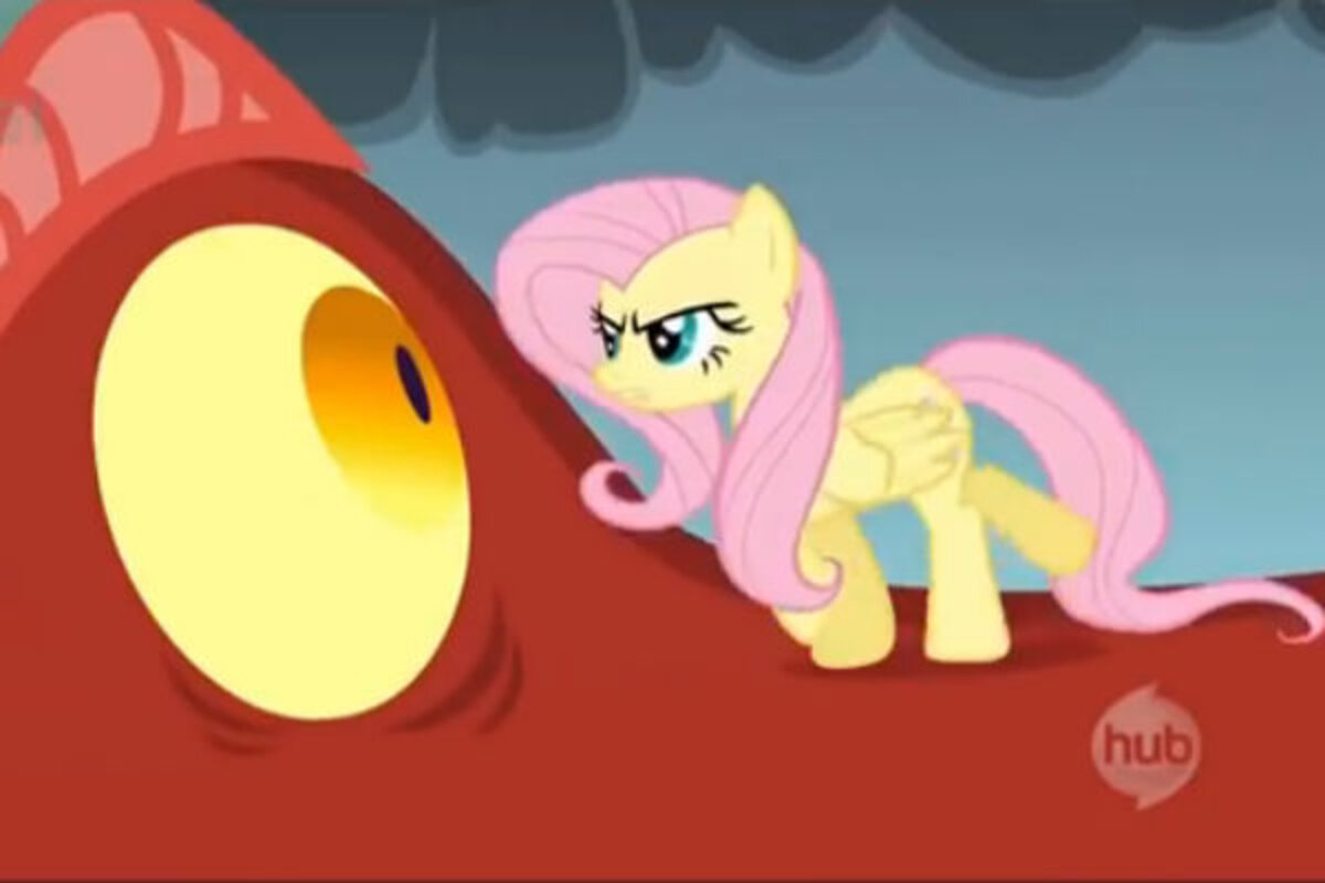 I can see the appeal, since one of the on "My Little Pony" is one in which the painfully shy, soft-spoken, pink pony sees a massive dragon attacking her pals. Fluttershy stands up to the bully.