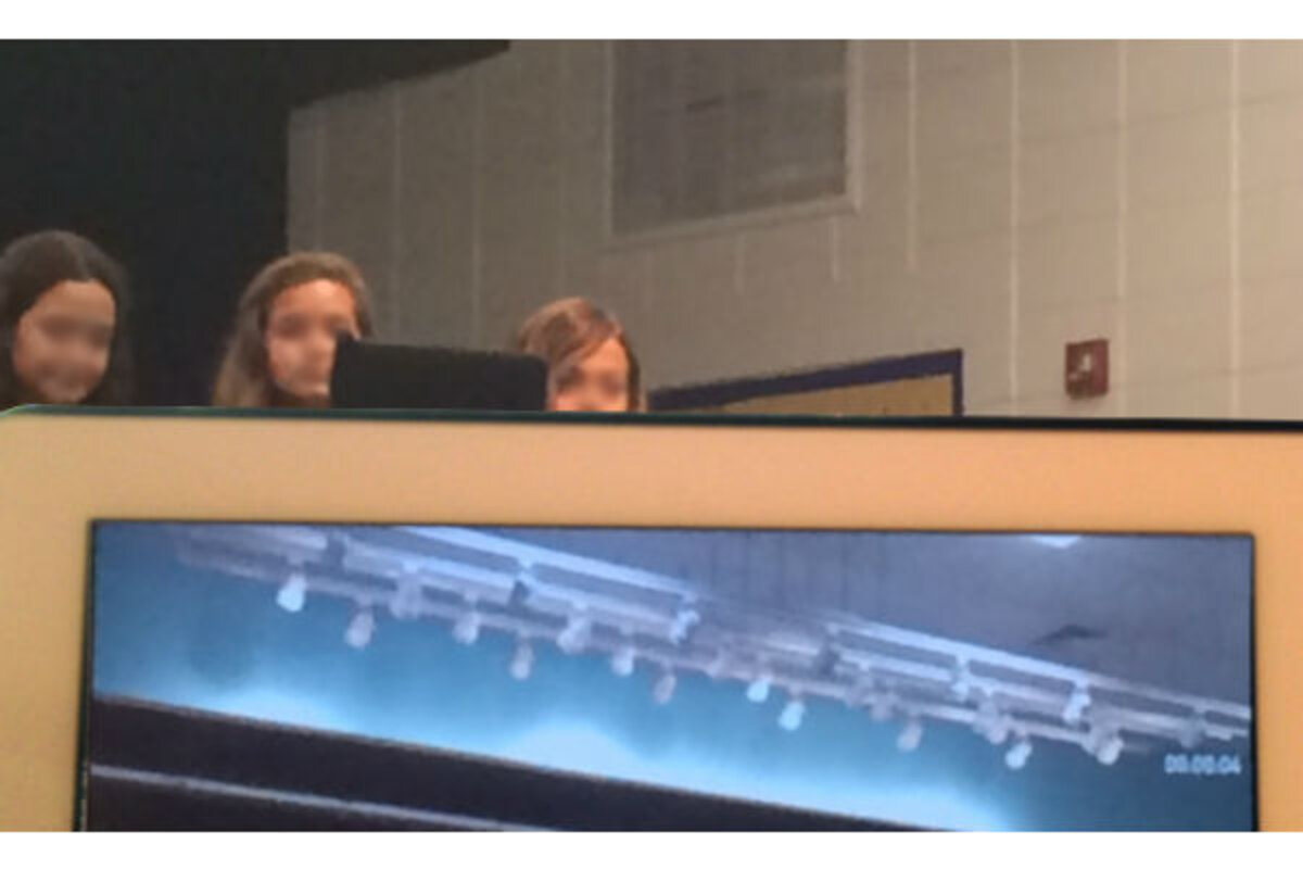 Please don鈥檛 do this. There is no stadium seating in school cafeterias. And so when you do this 鈥 when you sit in a chair and 聽hold your device above your head for the entire performance 鈥 you are blocking the view of many, many parents behind you.