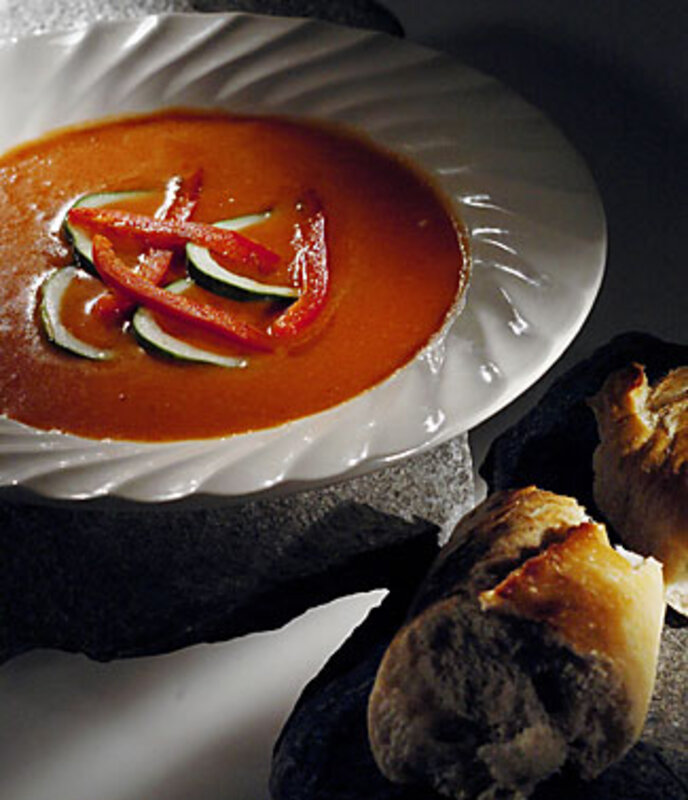 "Is it a food? Is it a drink? With all its different ingredients and colors and textures, gazpacho offers so many possibilities," Garcia says. "It gives you a chance to be really creative." Creative indeed. This year, the 33-year-old chef introduced a new ajo blanco that uses smoke and a "snow" made from litchis to re-create the landscape of the nearby Sierra Nevada mountain range.