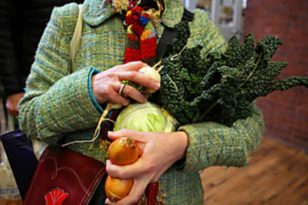 The search for local food is what brought Kathrine Lovell and Carmen Grinkis of Barrington, R.I., to the Rhode Island Wintertime Farmers' Market.
