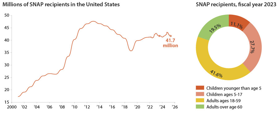 In 2024, each person on SNAP received about $187 per month in benefits. Without that, people across America will have to find a way to obtain groceries and basic necessities. Almost two-thirds of them , and more than 1 in 3 are in families with members who are older adults or are disabled, according to the progressive Center on Budget and Policy Priorities.