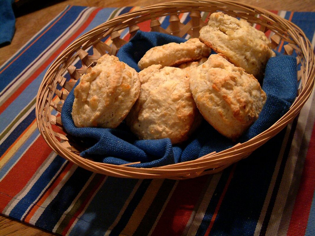 After removing the scones from the oven, put them onto a cooling rack covered with a tea towel. Place another tea towel on top of the scones to trap the steam and to keep the scones from drying out as they cool. Serve warm with butter. Makes 8 scones.