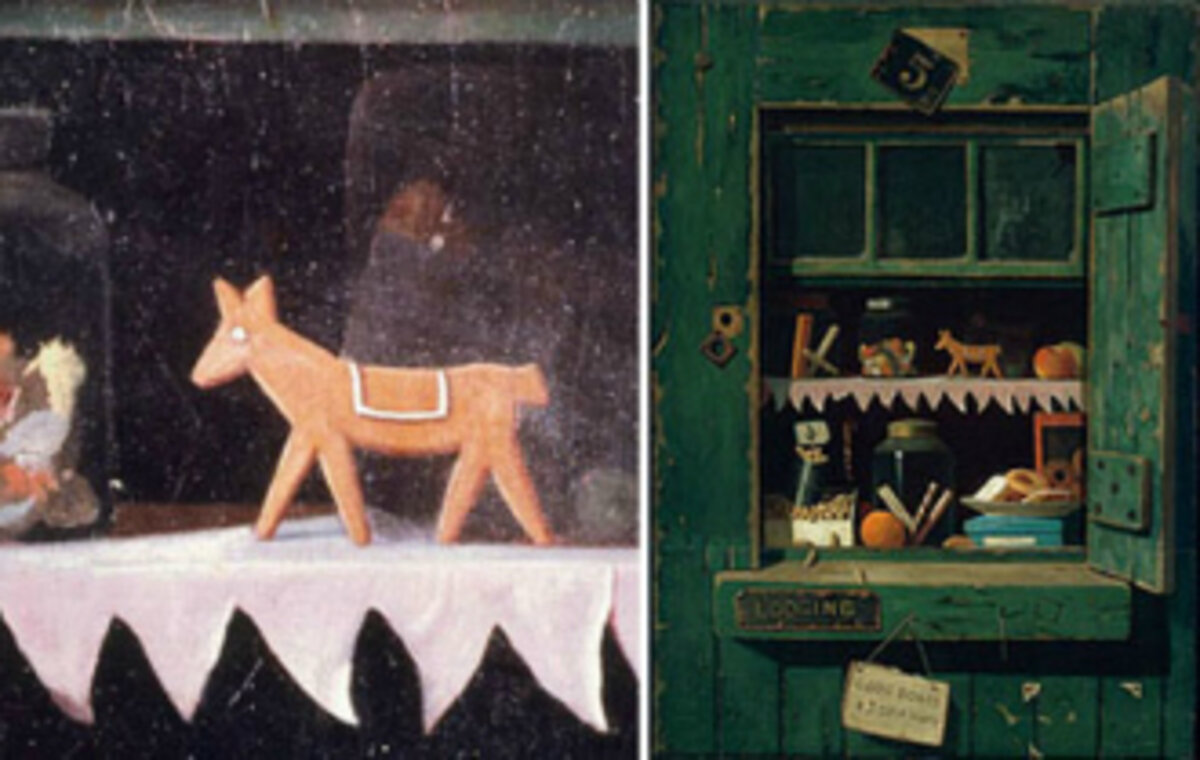 The American trompe l鈥檕eil artist John Frederick Peto depicted ordinary objects at their actual size in his paintings. Peto worked within the genre throughout his career and "The Poor Man鈥檚 Store" is an early example of his aesthetic style. The jumble of goods displayed through an open window in the painting portrays candies and fruit, gingerbread, and nuts.