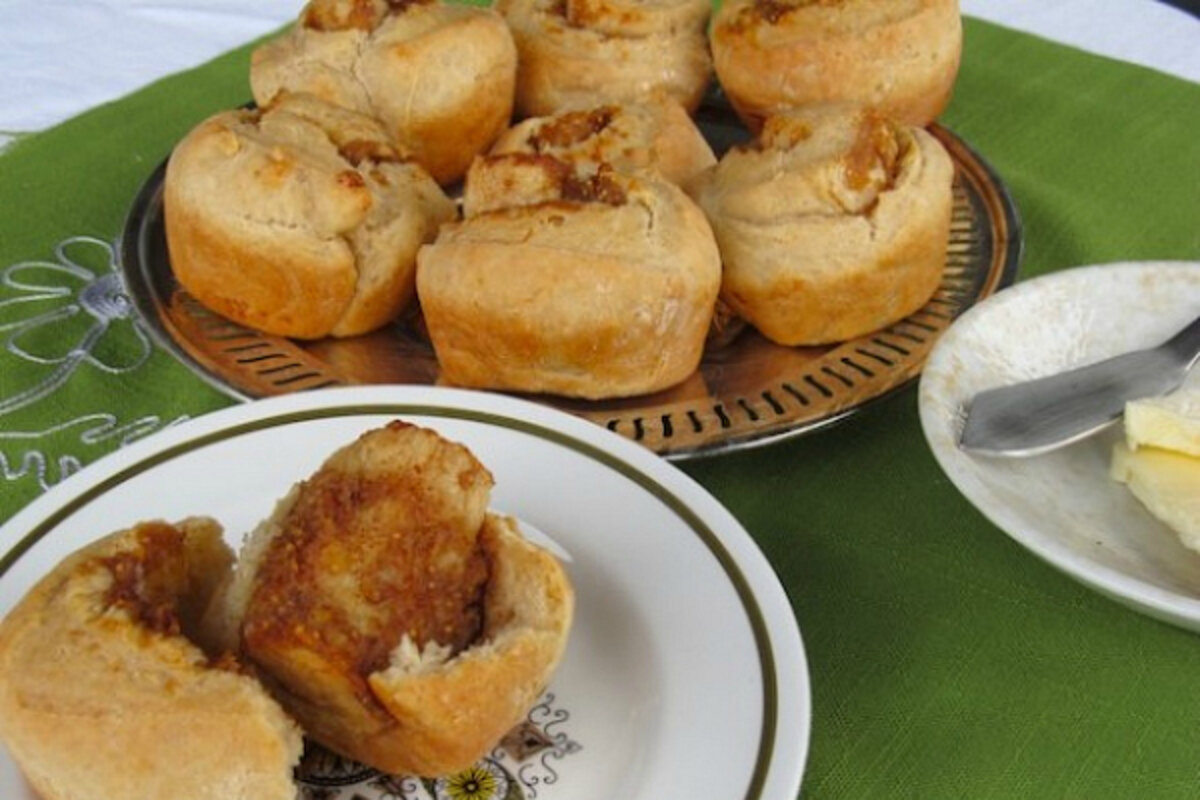 Cinnamon rolls made with curried fig butter (sans sugar of course). Now, that was a good idea. But I didn鈥檛 want to fuss with yeast and regular bread dough but I had a better idea! I found a recipe for yogurt biscuits years ago (sorry I can鈥檛 quote a source because it was hand written in my little cookbook so very long ago) and they鈥檝e been a household favorite ever since. I suspect it鈥檚 the yogurt that really sets these biscuits apart. They stay moist and light for days, unlike it鈥檚 buttermilk counterpart that typically are only good the day they are made.