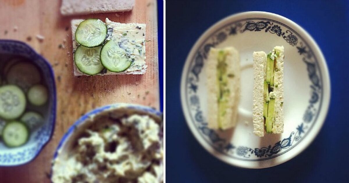 Sometimes the lack of a complicated recipe puts a block on all of my writing efforts. I wonder if it is necessary to share a sandwich recipe so simple that essentially it reads, bread, butter and cucumber 鈥 assemble. These dainty finger sandwiches were first made by my friend who lined them up on their edges to make a pattern of bread, bread, butter, cucumber, bread, bread, butter, cucumber鈥.