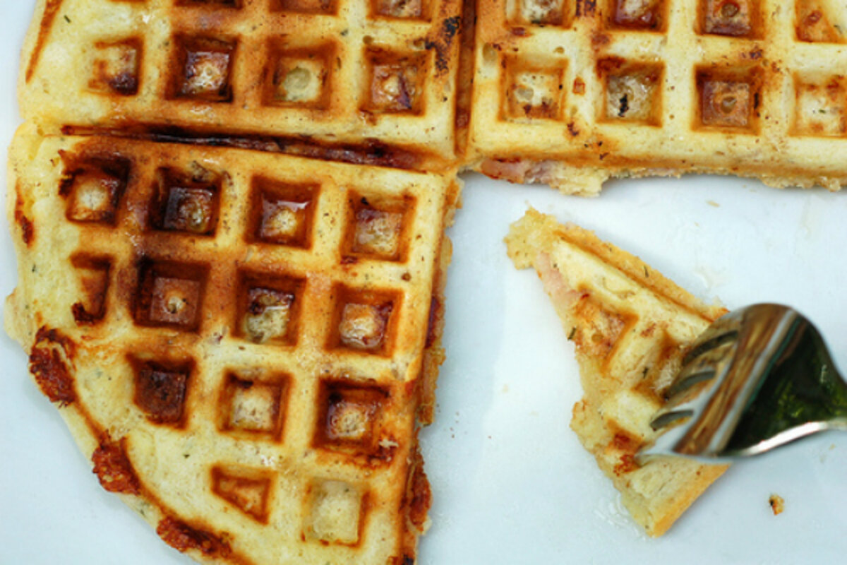 Savory waffles 鈥 what an amazingly good, simple idea! And one that had never occurred to me before, even though we make waffles fairly regularly and often add raspberries, peaches or blueberries to them. Duh!