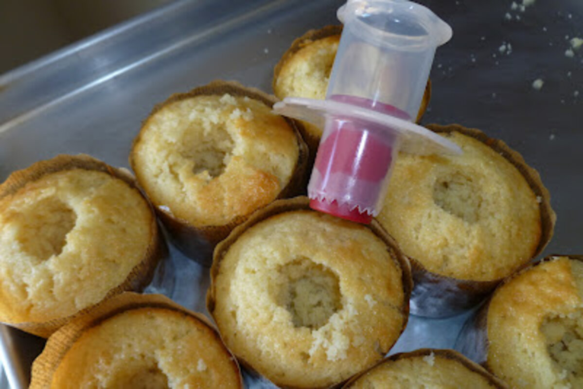 Despite my aversion to cupcake fillings, I decided I'd try it out 鈥 namely because I found a cool new baking gadget to play with: the .聽 Granted, a small knife or the large-enough end of a decorating tip could accomplish the same thing 鈥 making a hole or well in the center to be filled with filling.聽 But for $4.99, no tax, and free shipping, I felt I could indulge in a new baking gadget.
