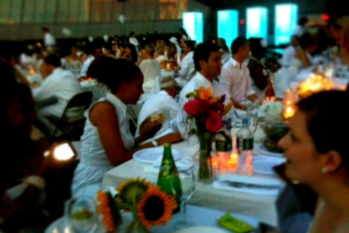 I had a hunch we鈥檇 be heading down to the waterfront, and we did. As we wheezed our way through the downtown streets we passed groups of people in white emerging from various subway stations. The demure masses carried听tables, picnic baskets, balloons, and even a parasol.听Ooo la la!