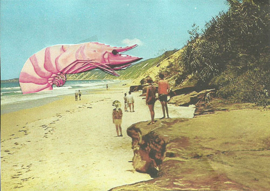 The collages and paintings by Maz Dixon featuring 鈥淭he Big Things of Australia,鈥 will be featured in the upcoming curated exhibition at . Beginning in the early 1960s, monumental objects ranging from giant fruit to prawns and pelicans began to litter the landscape of Australia.