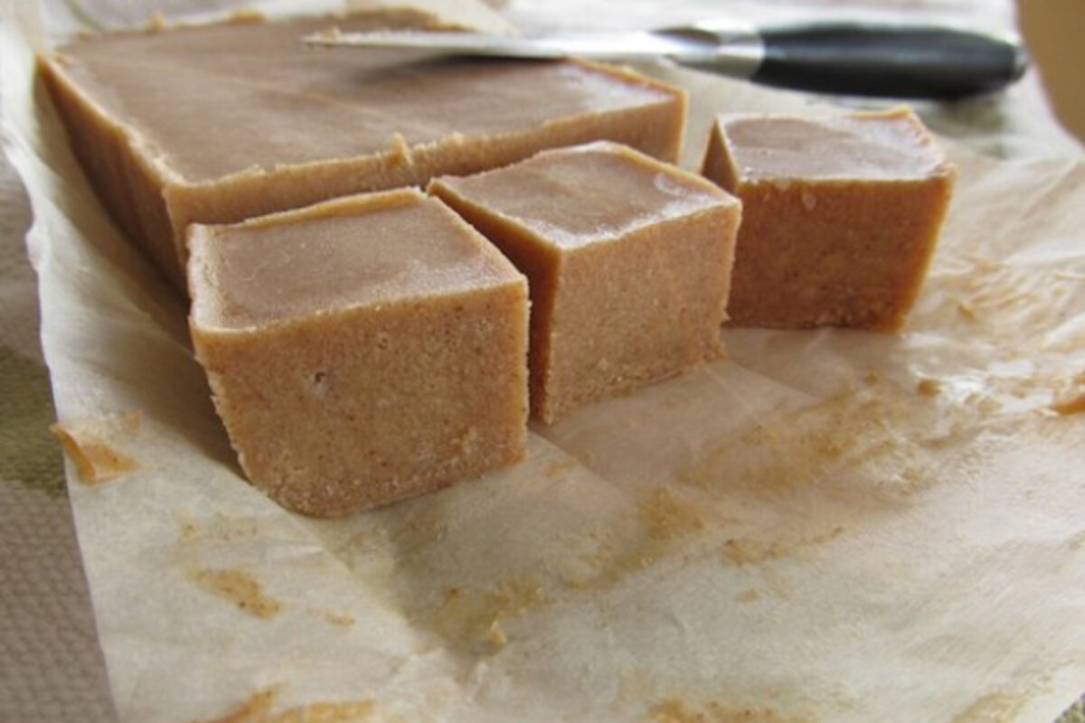 Pour into a small 3- x5-inch mini loaf pan lined with parchment paper or pour into silicone molds. Allow the mixture to cool in the freezer or fridge into solid. Slice into small 1- x1-inch squares or slices. Because of the coconut oil, these will melt if not kept in the fridge or freezer.