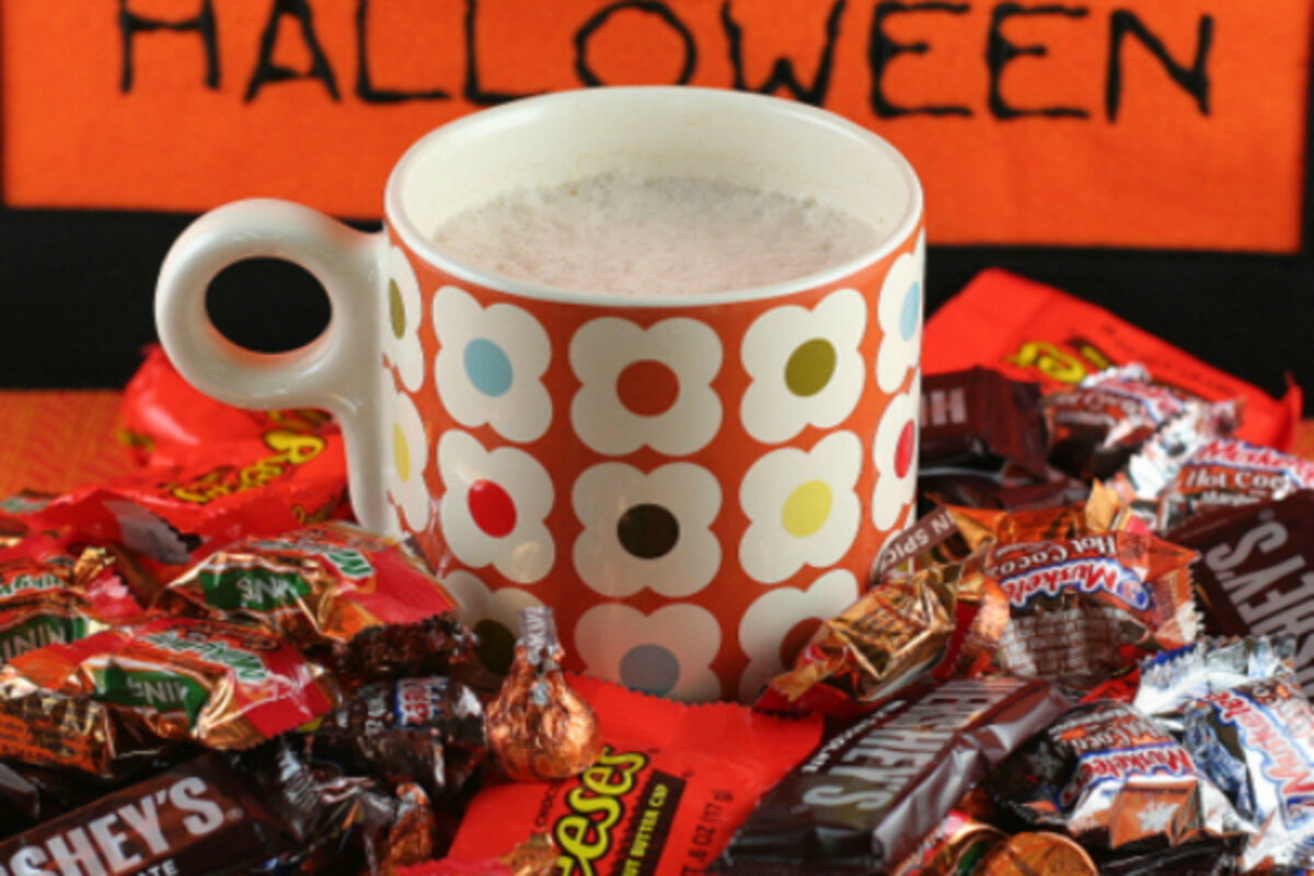Too much leftover Halloween candy? Use it to make a delicious hot drink.