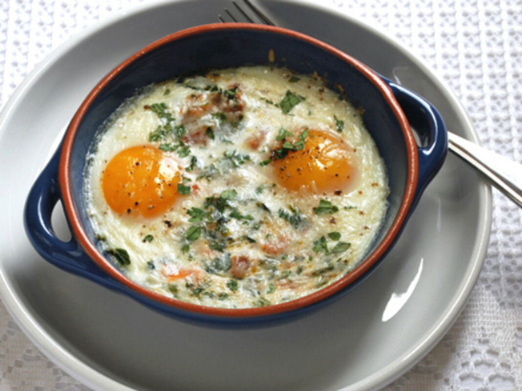 Baked eggs lend themselves to all kinds of variations and dressing up, though 鈥 with fresh herbs, cheese, bits of ham or bacon or even store bought salsa. And for serving weekend house guests, they鈥檙e actually easier to get to the table all at once (and still warm, thanks to the oven-heated ramekins) than making plain fried eggs for everyone. Best of all, serving them in individual baking dishes makes them seem special.