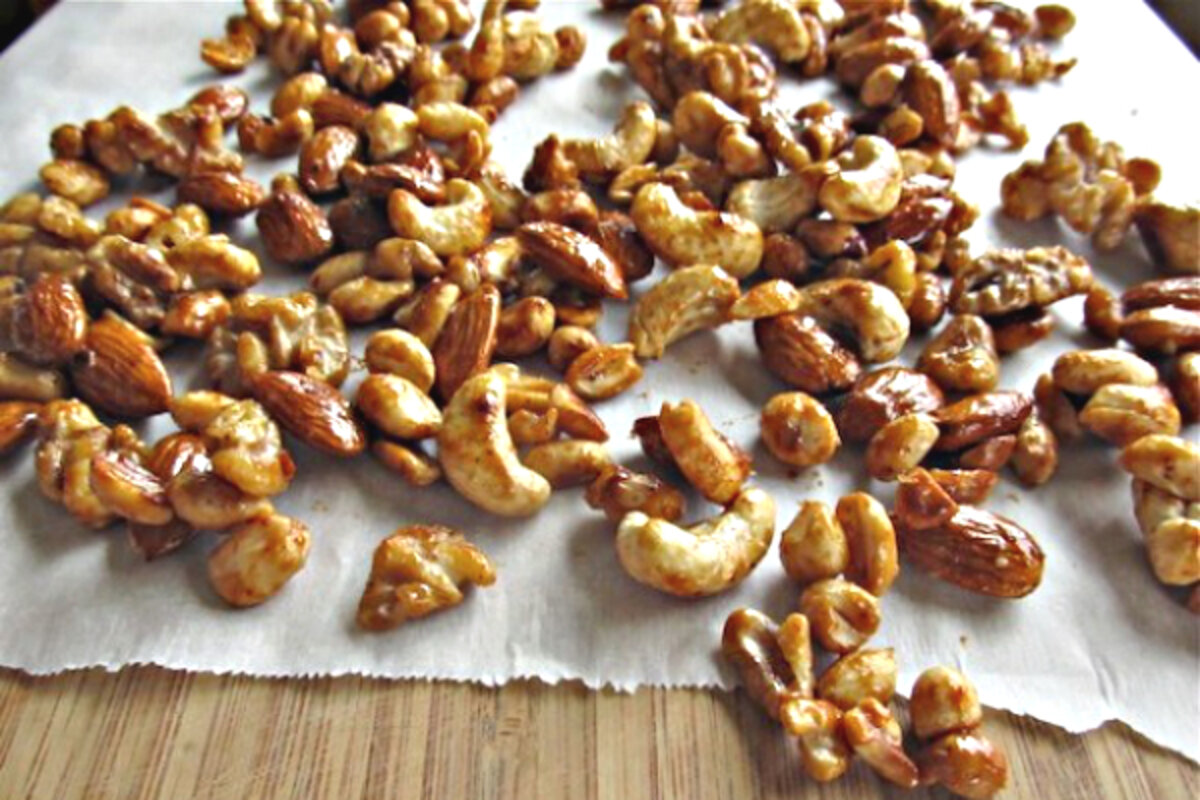 So I thought I鈥檇 show you the quick, 5 minute, cheat method of making candied nuts. Spread them out on cookie sheet lined with parchment paper and pop them in the fridge or freezer and in 5-10 minutes they鈥檙e ready to go. With 5 minutes to spare, you鈥檒l even have time to whip up (they set in 15 minutes in the freezer while you鈥檙e visiting) or put together a cheese plate and crackers and a pot of tea. Heck, I鈥檒l even have 30 seconds to go see if I remembered to brush my hair today.