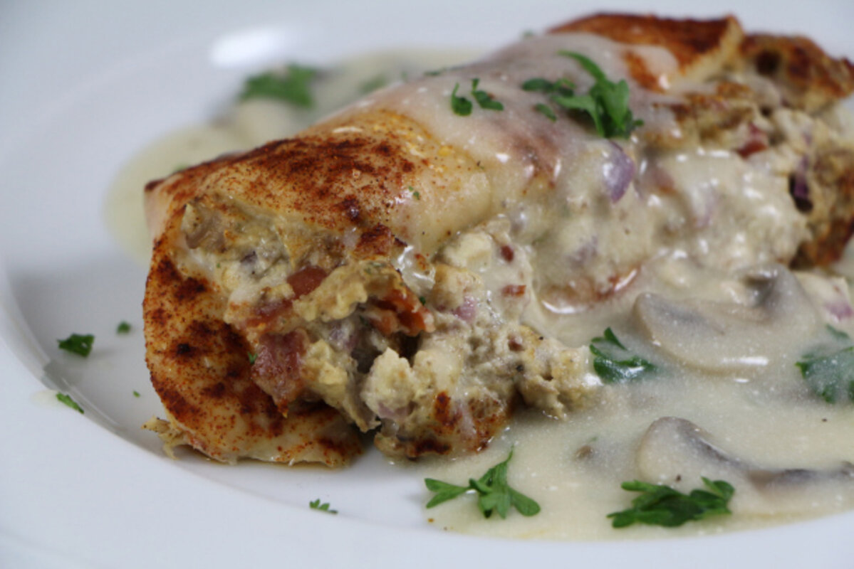 Providing your baby doesn鈥檛 steal your bacon before you get a chance to use it, you should make this spectacular bacon-mushroom stuffed chicken. This recipe is fully inspired by a friend, who chopped up and stuffed some leftover bacon-stuffed mushrooms I鈥檇 made for her holiday party, into a few chicken breasts for an easy day-after-party dinner.听Genius use of leftover stuffed mushrooms.听Taking that lead, I modified my recipe for听听to be intentionally used as a filling for chicken and paired it all with a creamy sour cream and mushroom gravy for a simple and satisfying dinner.