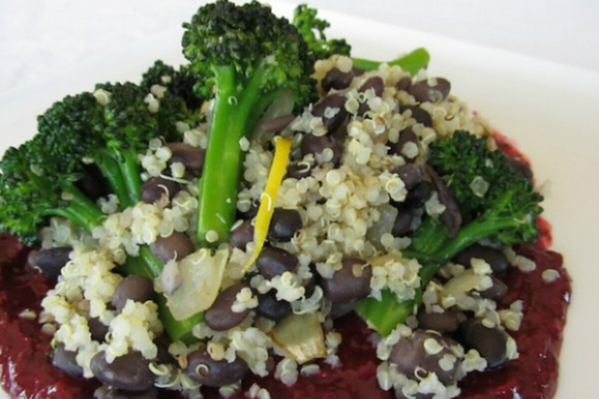 Black Bean, Quinoa & Broccoli Salad with Blackberry Serrano Sauce