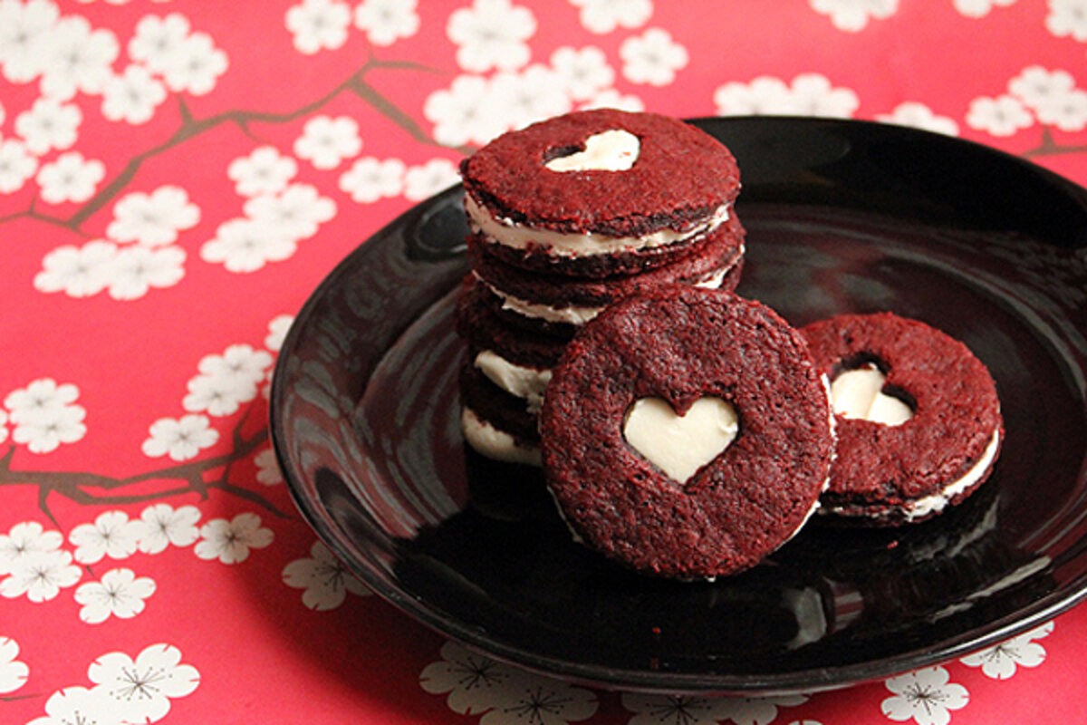 This year, we decided to try a new red velvet recipe. These sandwich cookies were chosen in part so I could employ my favorite聽聽cutter. The method of spreading out the batter is a little fussy. But, we loved the flavor of the cookies and the consistency. For almost a week, they lived on our counter in an air tight container and stayed soft.