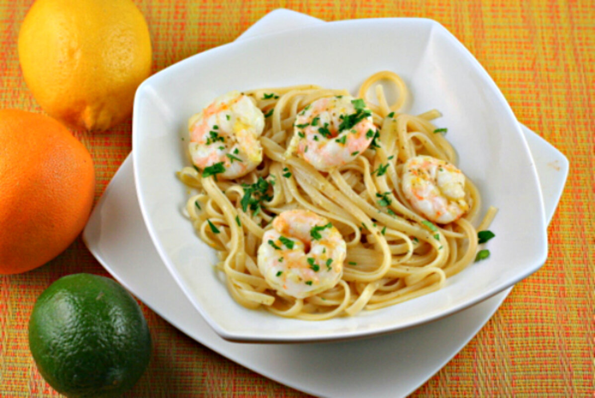 Big juicy shrimp remind me of summer, and citrus is sometimes the one spot of sunshine in the winter foodscape. Add a little garlic and fresh, leafy parsley and this is a bright, sunny dish. A touch of cream adds some body, but mostly this sauce just glazes the pasta and shrimp with zest. Use a high-quality olive oil to make sure the citrus really shines.