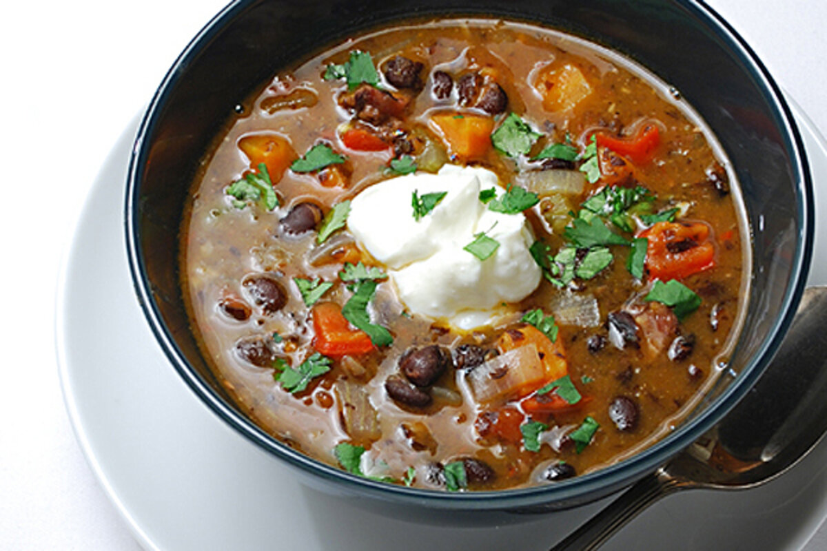 Lively, hearty black bean soup with ham hocks