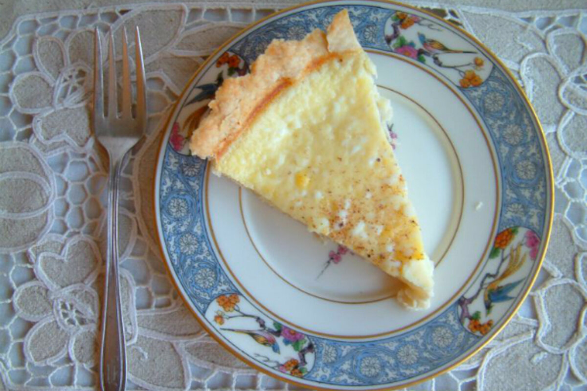 The finished product was delicate and not very sweet, and I could see how it would make an appropriate dessert for a heavy meal like a New England Boiled Dinner. In fact, I found it to be so bland it was like a dressed-down quiche. I enjoyed a slice for breakfast several days in a row.