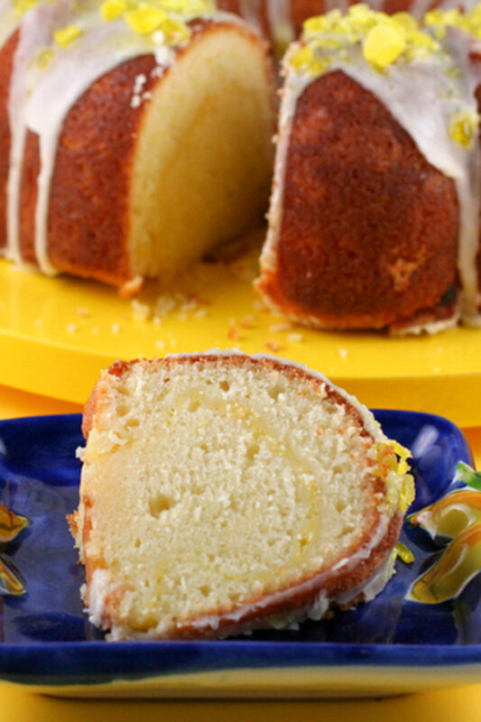 I created this cake for my mother, who loves, loves lemon. I have piled on every level of lemon flavor I can think of. Luscious lemon curd is her favorite, so I鈥檝e filled the cake with it. The cake itself is packed with lemon flavor and the sweet glaze is like sugary lemonade. A sparkling shower of crushed lemon drops adds crunch (which Mom also loves), lip-puckering sweetness and a pretty shimmer.