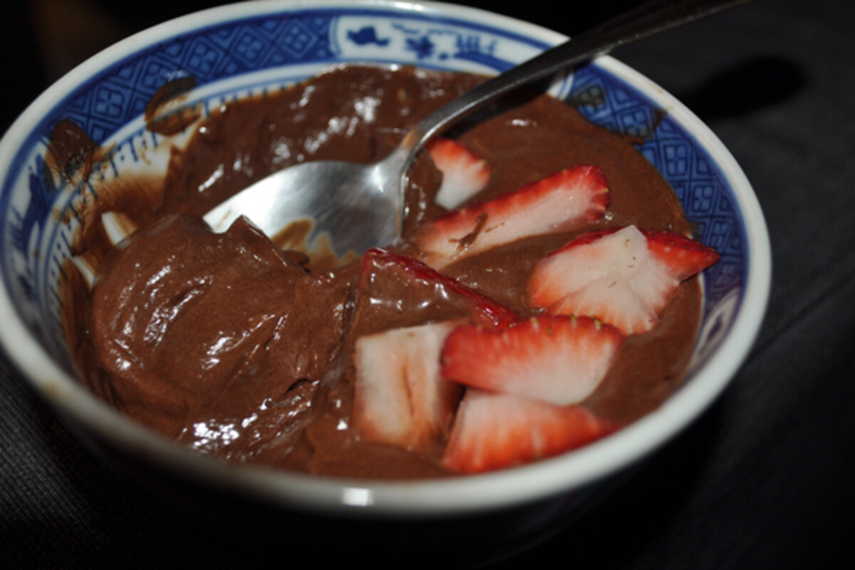 A disclaimer: This recipe contains raw eggs, which made me really nervous. The eggs whites and egg yolks are beaten听separately, but neither are cooked or baked in any way. After chilling, this makes for an extremely rich and fluffy mousse. My only other experience knowingly eating raw eggs has been in the form of cookie dough, so this recipe felt like a bit of a risk, but well worth it. I taste-tested it a few hours before serving it to others, and then felt comfortable with small bowls. I topped my mousse with strawberries and bananas, but after its debut night, the leftovers were simply divine scooped spoonful by spoonful from the bowl in the fridge.